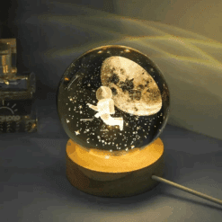 LÁMPARA VELADOR LED BOLA DE CRISTAL 3D ASTRONAUTA/GALAXIA/VRS LCB-0601