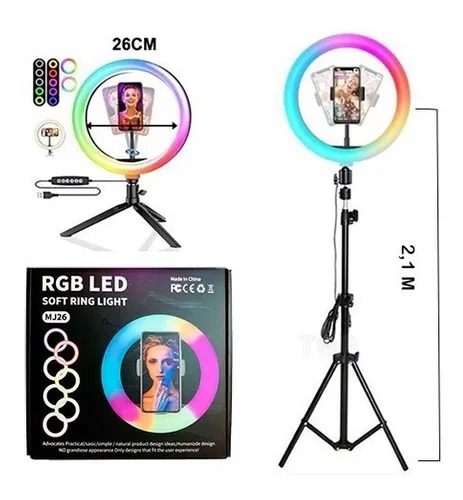 ARO FLASH LED SELFIE 26CM RGB CON TRIPODE JS-260