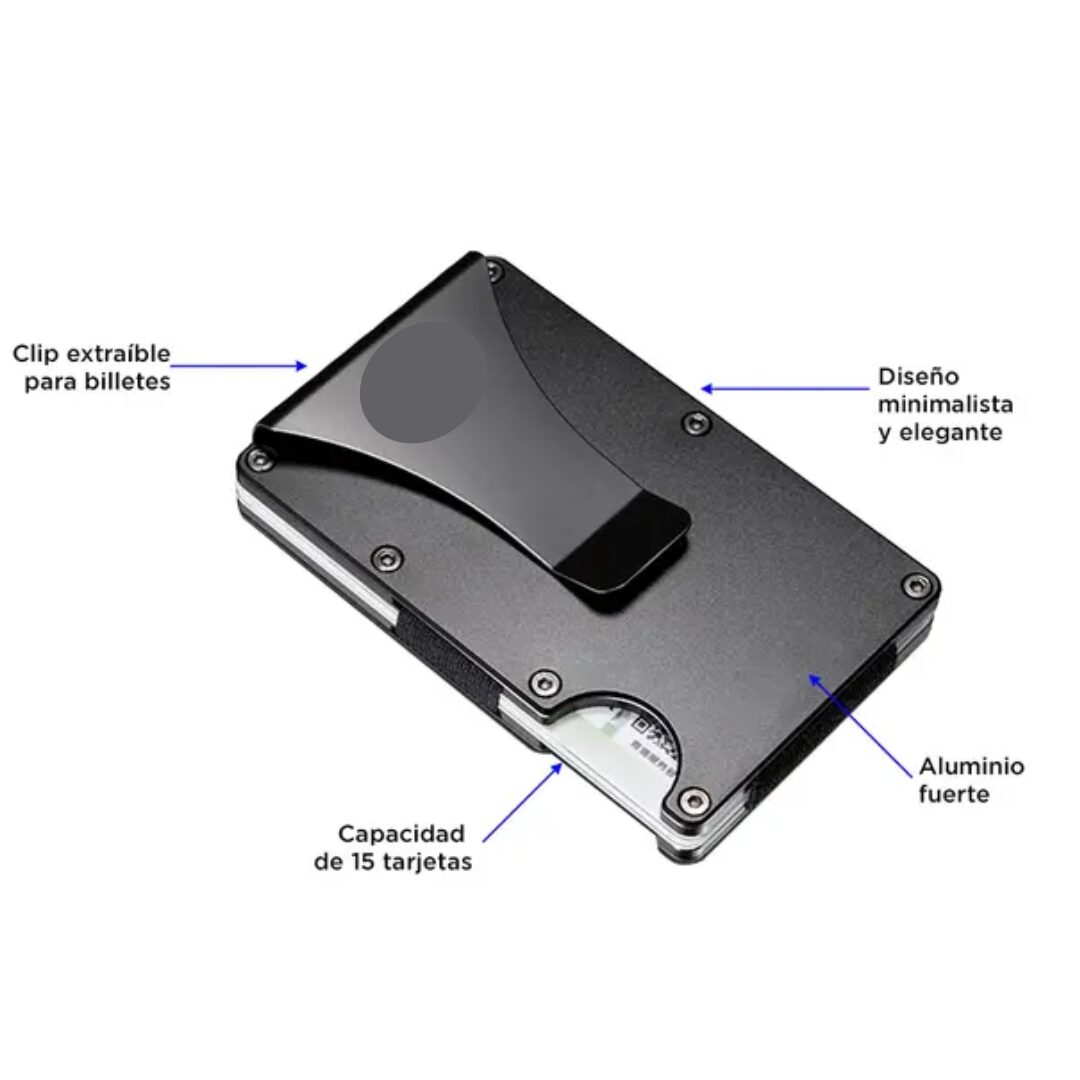 Protege tus tarjetas y billetes con esta billetera tarjetero con bloqueo Rfid anti robo.