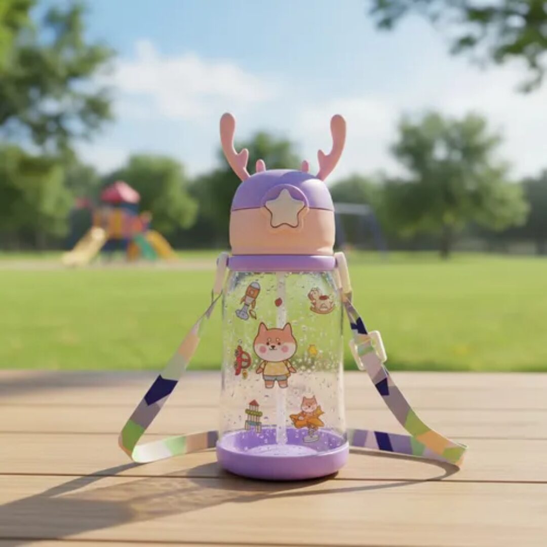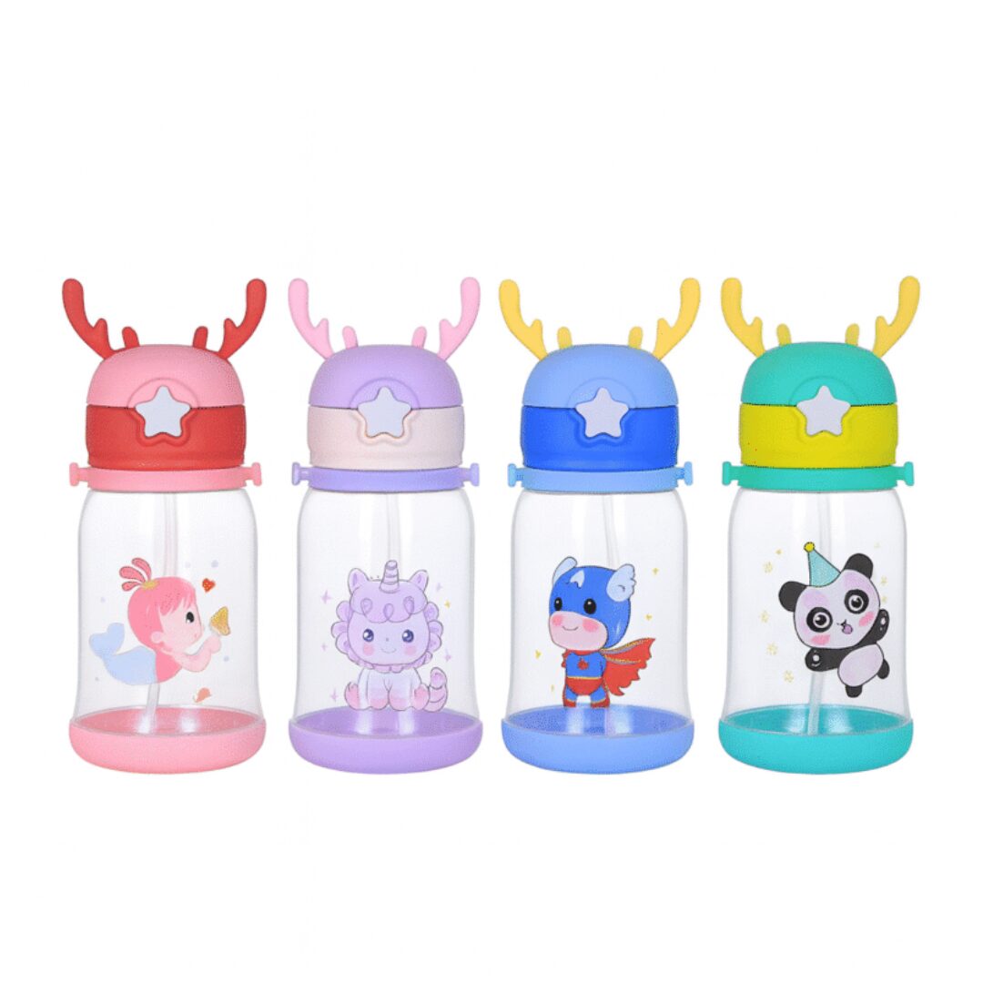 BOTELLA PLASTICA INFANTIL 500ML. De plastico trasparente, pico retráctil y correa. Ideal para la colonia y vacaciones. Sumalo a tu catalogo.