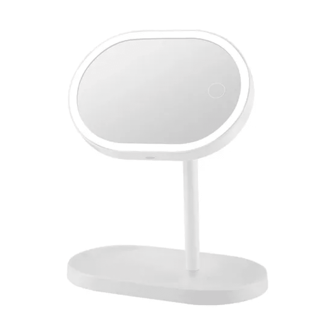 Eleva tu rutina de belleza con este sofisticado espejo de maquillaje con luz LED integrada. Su diseño minimalista y moderno en color blanco se adapta perfectamente a cualquier tocador o espacio de baño.