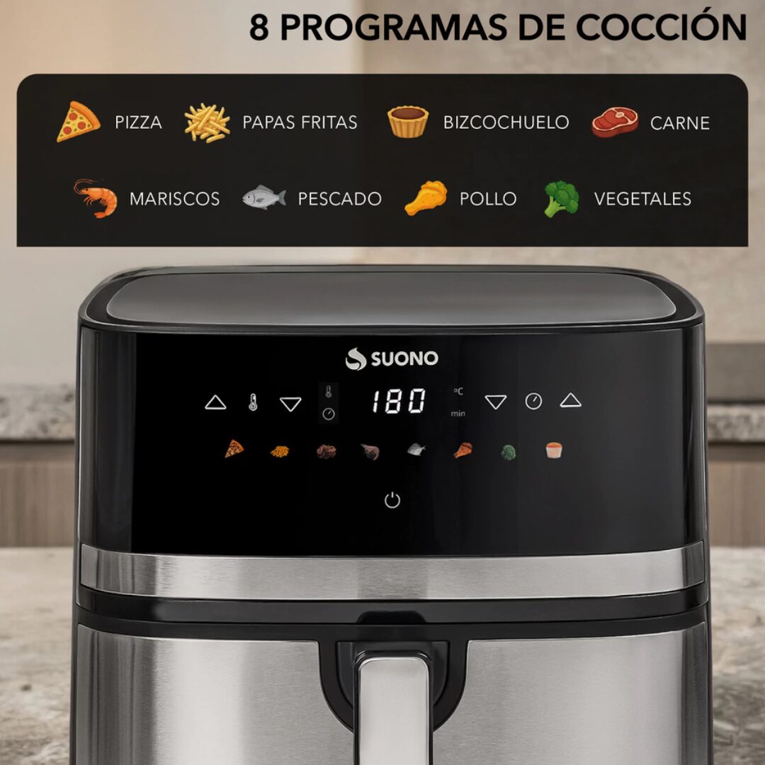 8 programas preestablecidos: Seleccioná el modo ideal para papas fritas, pollo, pescado, carne, vegetales, pasteles y más.