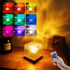 【Utilizando tecnología 3D especial】 Ondulación de agua impulsada por una placa de luz giratoria interna.La refracción de la luz a través de la lámpara de cristal es brillante y colorida, muy elegante.