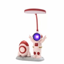 Además de ser un velador, cuenta con un sacapuntas y un espacio en la navecita acompañante para colocar lápices o lapiceras.