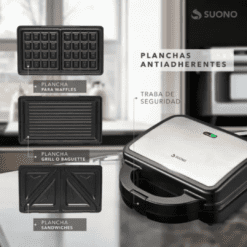 – Función: 3 en 1 (Sandwichera / Panini Maker & Grill / Waflera