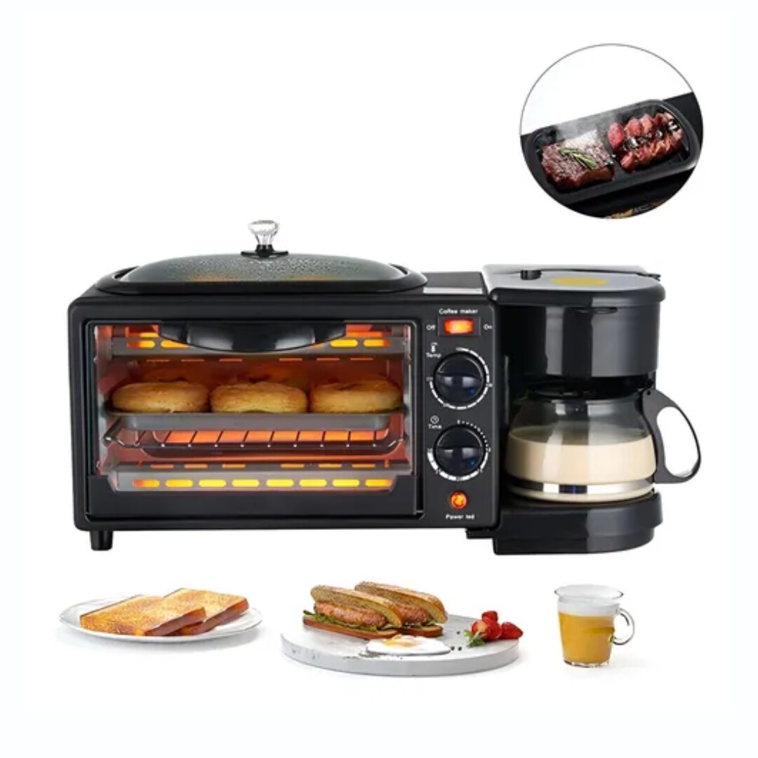 Permite preparar un delicioso desayuno en un solo lugar, combinando horno, cafetera y plancha.