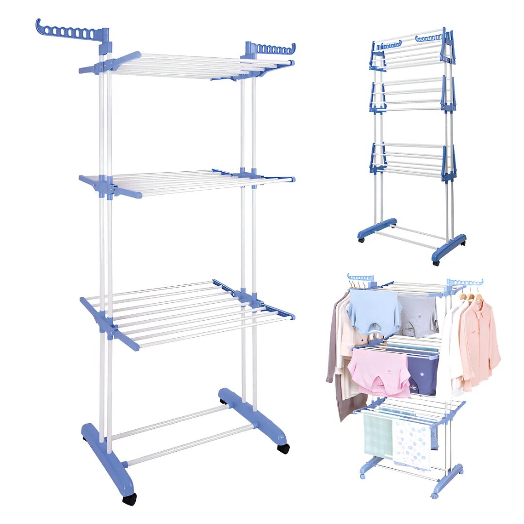 Diseño vertical: Cuenta con múltiples niveles de varillas, permitiendo colgar una gran cantidad de ropa en un espacio reducido.