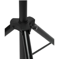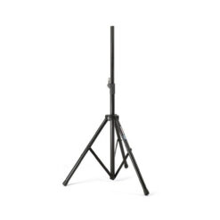 Soporte para bafles de acero y plástico con descanso amortiguado y pernos ergonómicos para un fácil ajuste. A su vez cuenta con una base en forma de trípode para una mejor estabilidad.